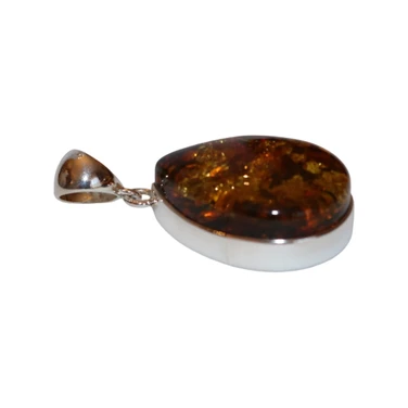 Classic Baltic Amber Pendant in a rich cognac color, set in a smooth silver-tone frame. The oval cabochon shap…