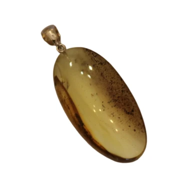 Light lemon amber pendant with natural dark inclusions. The oval shape and polished finish give it a clean, classic look. A beautiful simple piece for any amber jewelry lover.